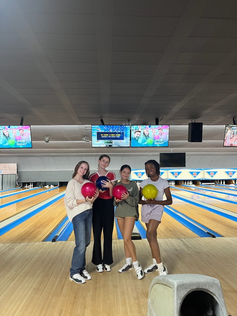 My dance friends that I attend High school with are in almost all the same school classes together. We decided to form a little study group. When we have tests coming up we can prepare together in advance. About a week ago, my friends came over to my host house and we studied for our history test together. After studying one of my friends parents picked us up and we went to a festival and then went bowling. We had such a great time together. It’s so nice to hangout outside of ballet and school. 💜School can be hard at times but when it’s tough my friends and I lean on each other!!